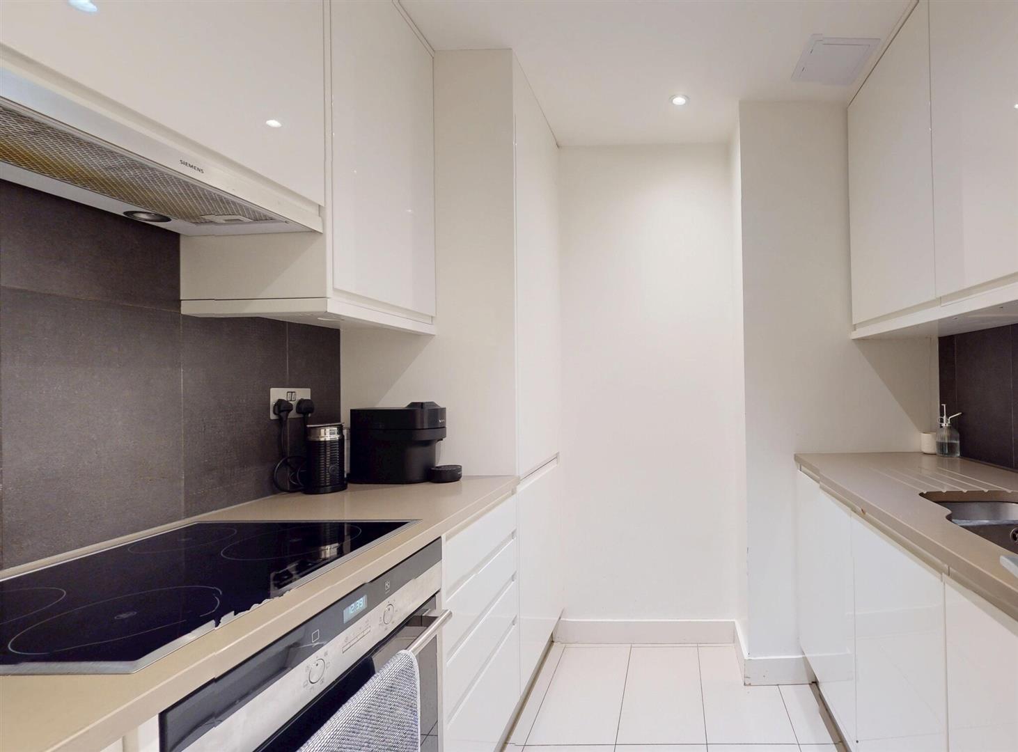 The accommodation comprises a spacious reception room with an elegant bay window, a contemporary refitted kitchen with integrated appliances, and a well-appointed double bedroom.