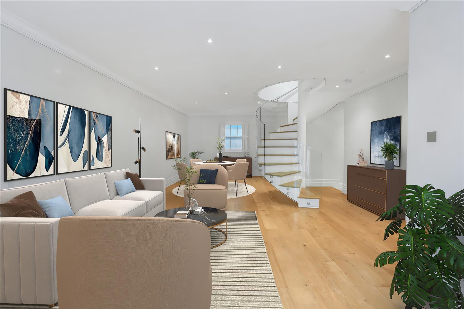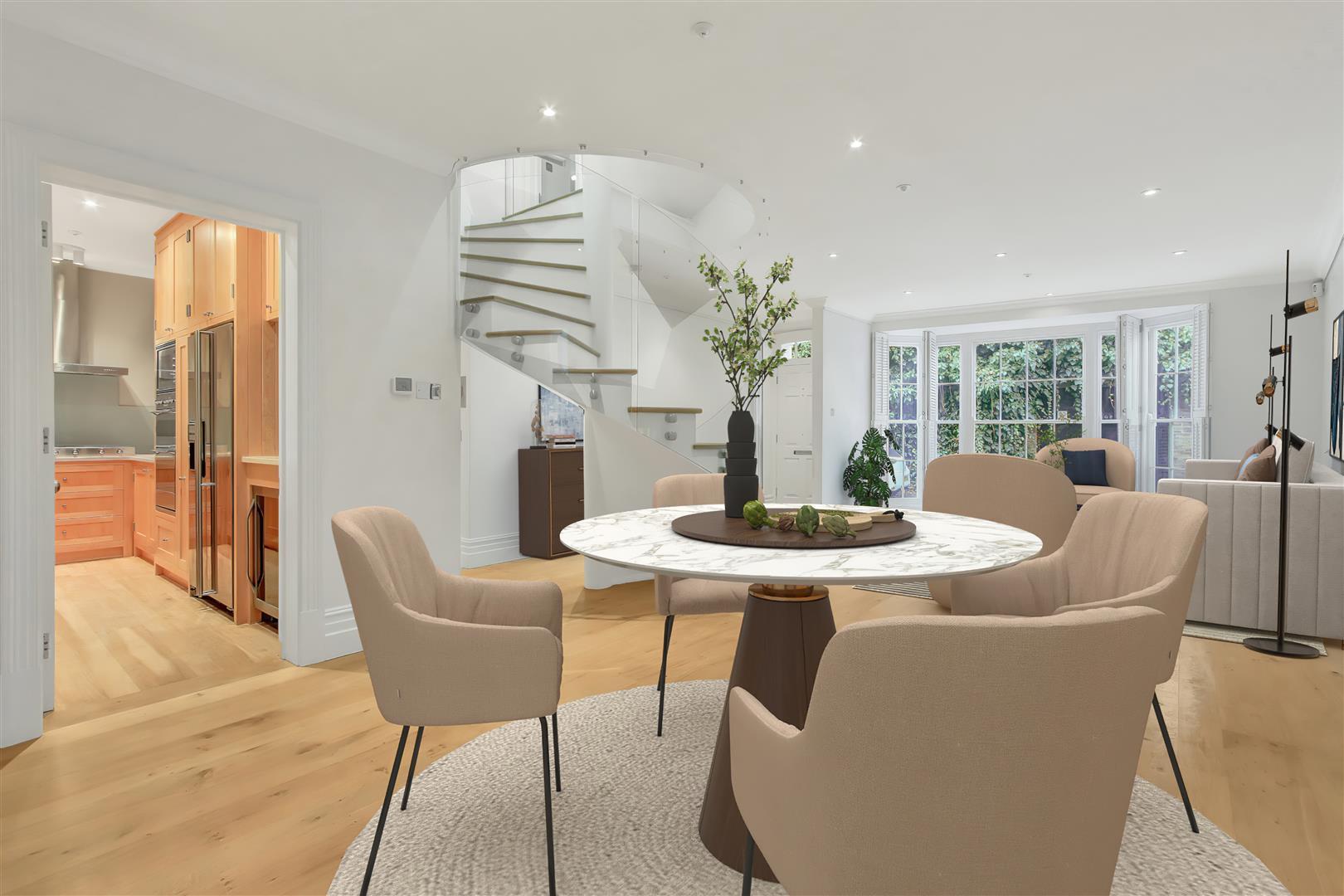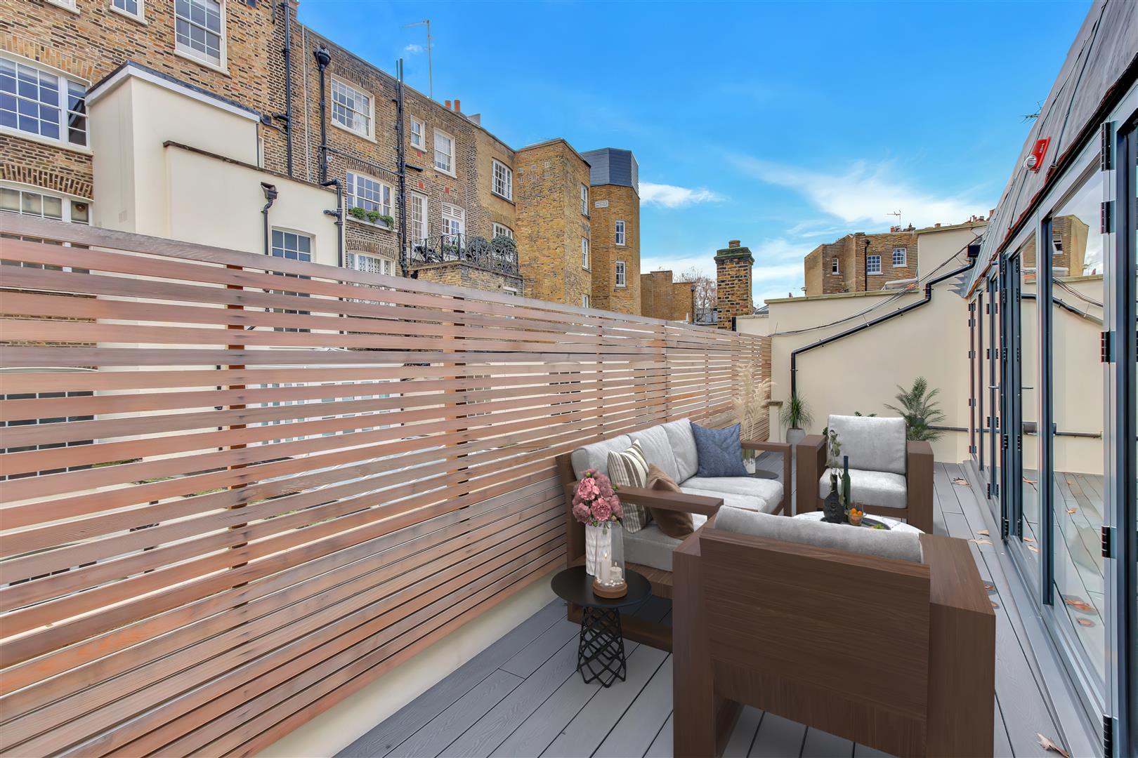 The property has been recently refurbished and undergone a renovation adding an additional third floor allowing for a beautiful open reception room space with added cabinetry leading on to a width long private roof terrace.
