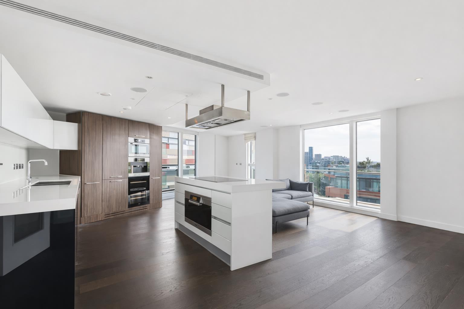 Set on the ninth floor of Moor House in the Grosvenor Waterside area, this apartment offers impressive views and lift access. The spacious open-plan layout features a generous reception and dining area, ideal for modern living.