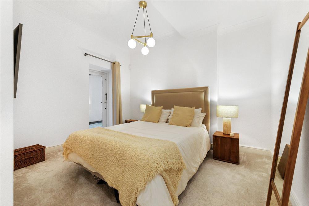 Finished to a high standard throughout, the property features excellent ceiling heights, two spacious en-suite bedrooms—one with a walk-in wardrobe—a well-proportioned kitchen, and a bright reception room. The layout is thoughtfully designed with an abundance of natural light.